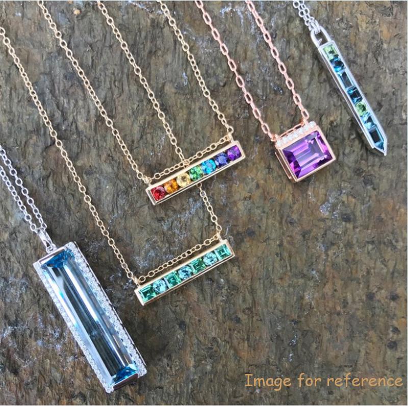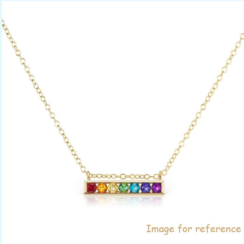 It is a silver necklace design with cirque horizontal pendant,so dit lyk aanloklik.Dit Custom Wholesale Silver Necklace Supplier of Cirque Horizontal Bar Necklace with Rainbow Gemstones France for your brand handgemaak en geskep deur JingYing,dainty silwer necklace.It will be suitable for different kind of occasions,your must be zirconia for what you are wearing.Of course,jy kan vra om jou eie gunsteling logo of voorletter daarop te graveer,Ons kan dit vir u doen,dit is cool. dit sal jou gekose opsie wees.