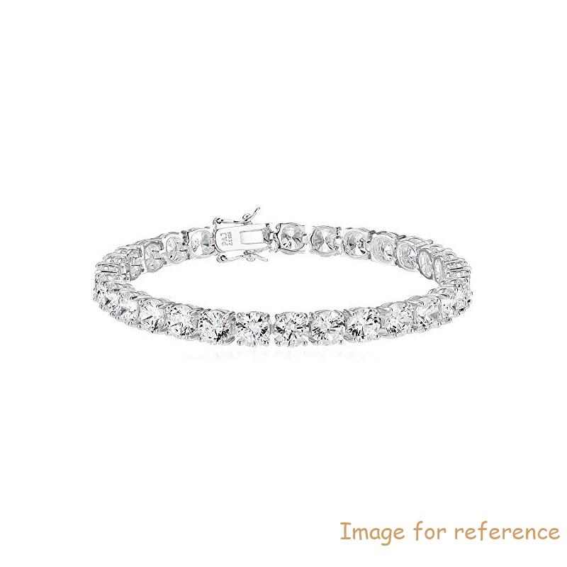 - Tennis bracelet featuring round cubic zirconia stones in four-prong basket settings set in sterling silver