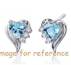 Custom wholesale Swiss Blue Topaz Earrings Sterling Silver Heart Shape CZ Accent