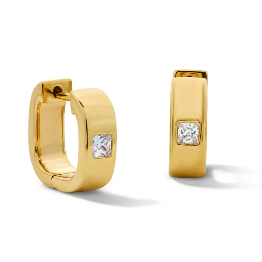 Maßgeschneiderte Herren-Huggie-Ohrringe aus 18 Karat Gelbgold vergoldetem Sterlingsilber mit kubischen Zirkonia-Steinen
