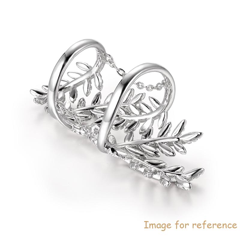 Rhodium plated dainty leaves ring featuring Cubic Zirconia