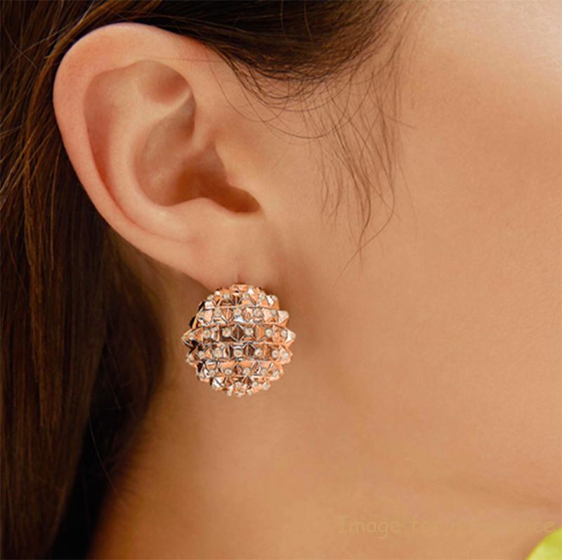Custom Wholesale Personality exaggerated design dentation Ball Earring Female France.Embodying ultimate French elegance, the gold plated earrings epitomizes the legacy of a diva, with her mysterious, unforgettable allure. Quintessentially feminine and refined, the fan-shaped motif draws inspiration from the colorful mosaics of the Baths of Caracalla, reflecting JingYing integral bond with the Eternal City through the very essence of France beauty.JingYing Custom Wholesale Personality exaggerated design dentation Ball Earring Female French.