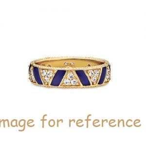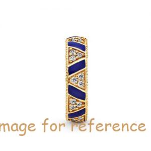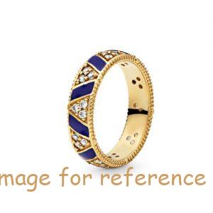 Make a bold statement with this 18k gold-plated sterling silver ring, inspired by the graphic lines of triangles. The Pandora Shine design features an exotic pattern of carefully clustered stones and hand-painted enamel stripes in clematis blue. The stackable ring is finished with milgrain edges. Wear with other band rings or style alone as a stand-out statement to show it off to full effect.