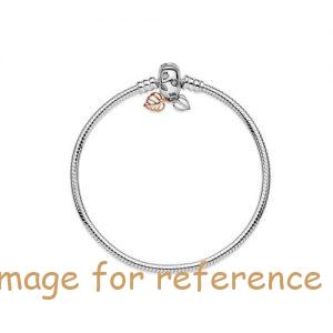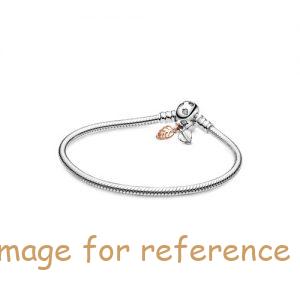 Tell your story and show off all the things you love with your charms. Collect them on this iconic Pandora Moments snake chain bracelet and show the world who you are. Add a touch of nature to your collection with the two dangling two-tone leaves and clear cubic zirconia set in leaf shapes on the bracelet clasp. Perfect when styled with your charm collection, the two-tone touch adds an elegant twist to this Pandora favourite.
