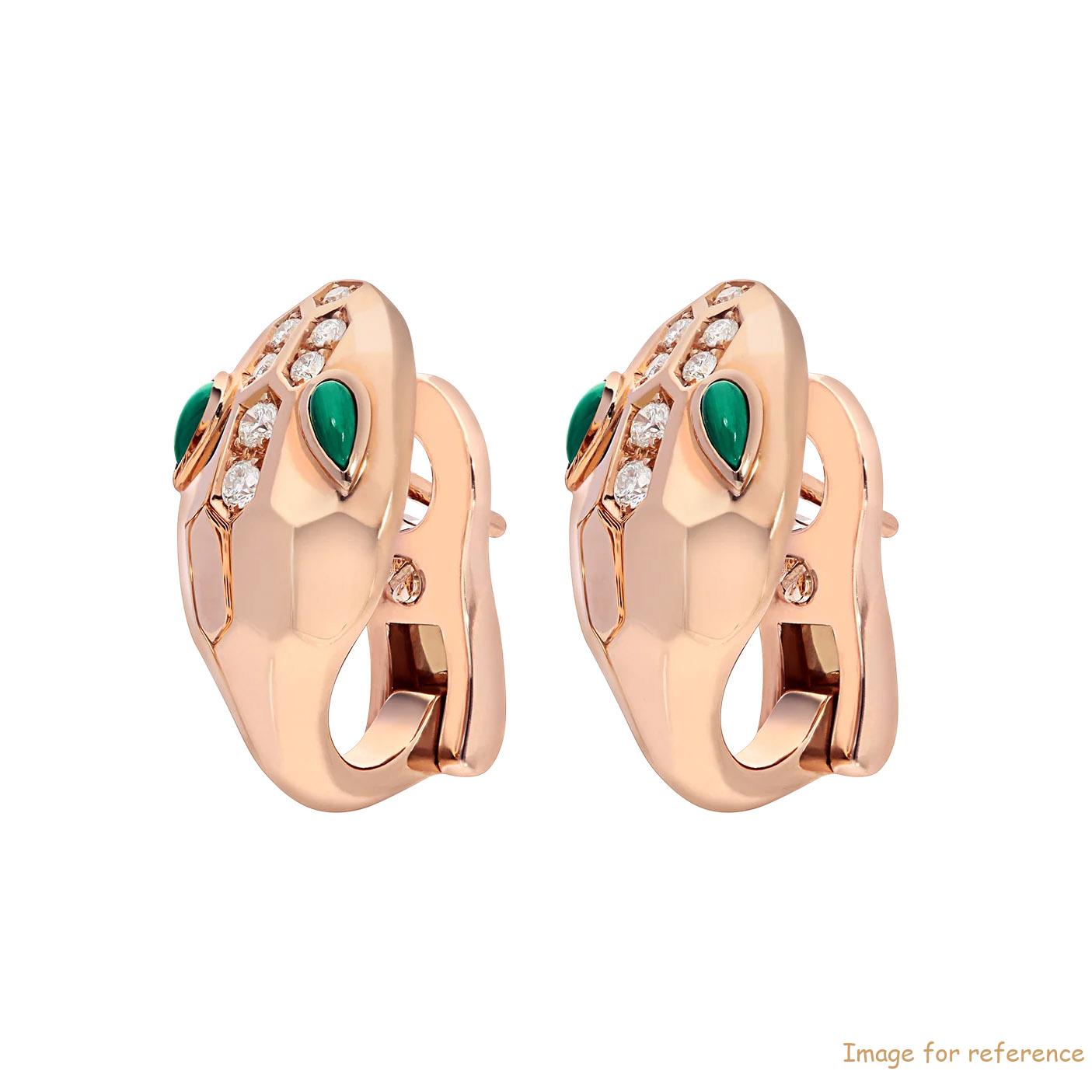 Custom design earrings in 18k rose gold, set with malachite eyes and demi pavé diamonds OEM Jewelry Factory