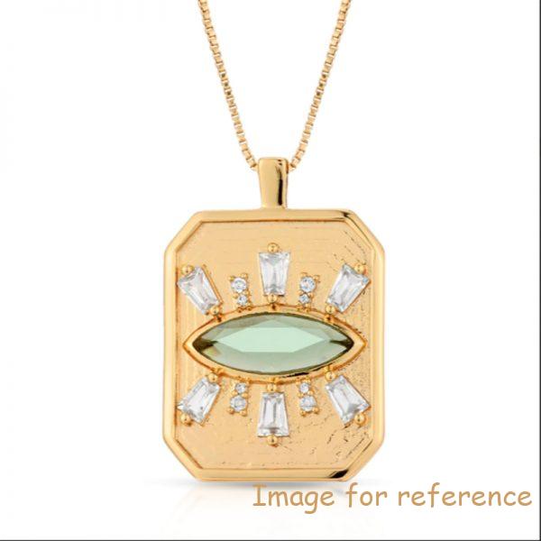 It is a silver necklace design with Athena eye pendant,so it looks alluring.This Custom Wholesale 14K Gold Plated Necklace Athena Eye Pendant Green Tourmaline Greek for your brand handmade and created by JingYing,dainty silver necklace.It will be suitable for different kind of occasions,your must be zirconia for what you are wearing.Of course,you can ask for engraving your own favorite logo or initial on it,we can do that for you,it is cool.it would be your choosen option.