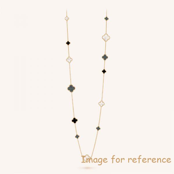 It is a silver necklace design with flower bead,so it looks alluring.This Custom Wholesale 925 Sterling Silver Necklace Magic Alhambra Long Necklace for your brand handmade and created by JingYing,dainty silver necklace.It will be suitable for different kind of occasions,your must be zirconia for what you are wearing.Of course,you can ask for engraving your own favorite logo or initial on it,we can do that for you,it is cool.it would be your choosen option.