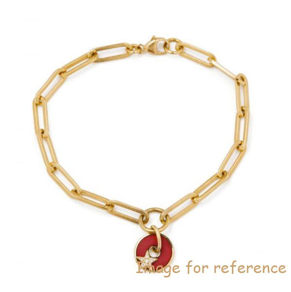 A red enamel pendant and a star paved with precious diamonds give an infinite shine to this delicate 18k gold palted silver bracelet.
