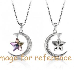 “Moon and Star” Sterling Silver Necklace Made with Swarovski Crystal
