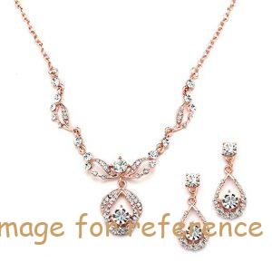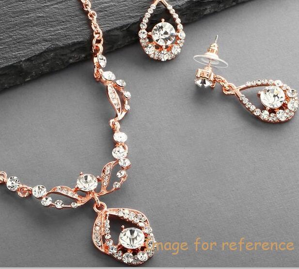 Balo için özel toptan 14k gül altın vintage kristal kolye ve küpe takıları, Gelin ve nedime