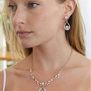 Vintage Style Art Deco Inspired Bridal, Bridesmaids or Prom Crystal Necklace and Earrings Set; 16″ to 18″ Adjustable Necklace; 1 3/8″ Center Drop; Dangle Earrings (1-1/2″ h x 5/8″ w) Include Posts with Comfort Back Disks