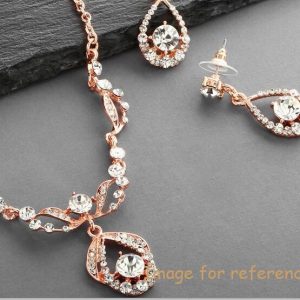 Glistening Genuine Austrian Crystals in Blush Gold for Diamond-like Brilliance, Bu kolye ve küpe seti, gelin partinizdeki tüm kadınlar için uygun fiyatlı fiyatlı